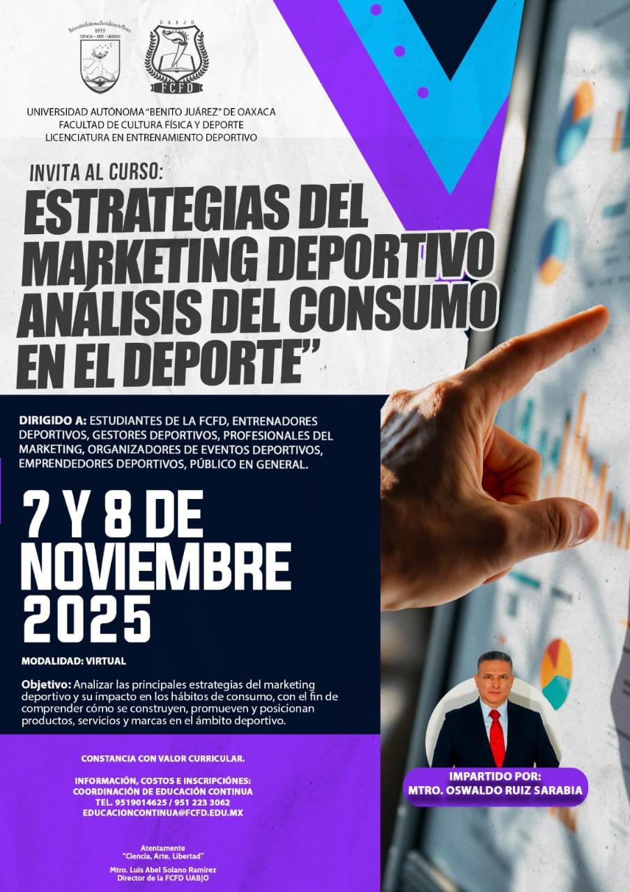 La Escuela de Cultura Física y Deporte de la UABJO les invita a asistir en el 1. Coloquio de Investigación Deportiva "Avances de investigación en la Licenciatura en Entrenamiento Deportivo, organizado por las y los estudiantes del Segundo Semestre.